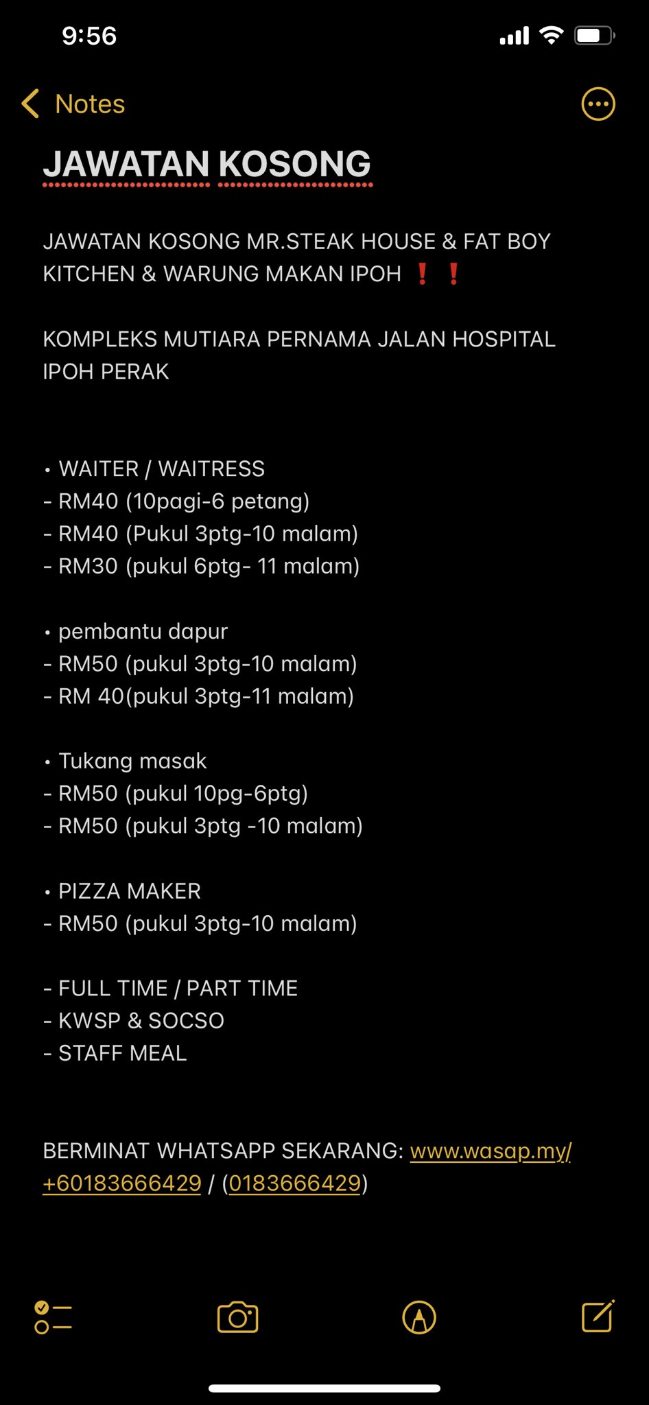 Atiqqq On Twitter Siapa Siapa Yang Tengah Cari Kerja Area Ipoh Kedai Kami Menawarkan Jawatan Kosong Mengikut Bidang Kalau Berminat Atau Ada Sebarang Soalan Bole Whatsapp Kami Jadilah Sebahagian Dari Krew