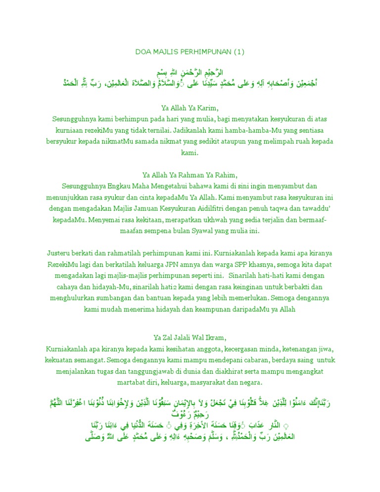 Doa Majlis Sambutan Hari Raya Aidilfitri Pdf